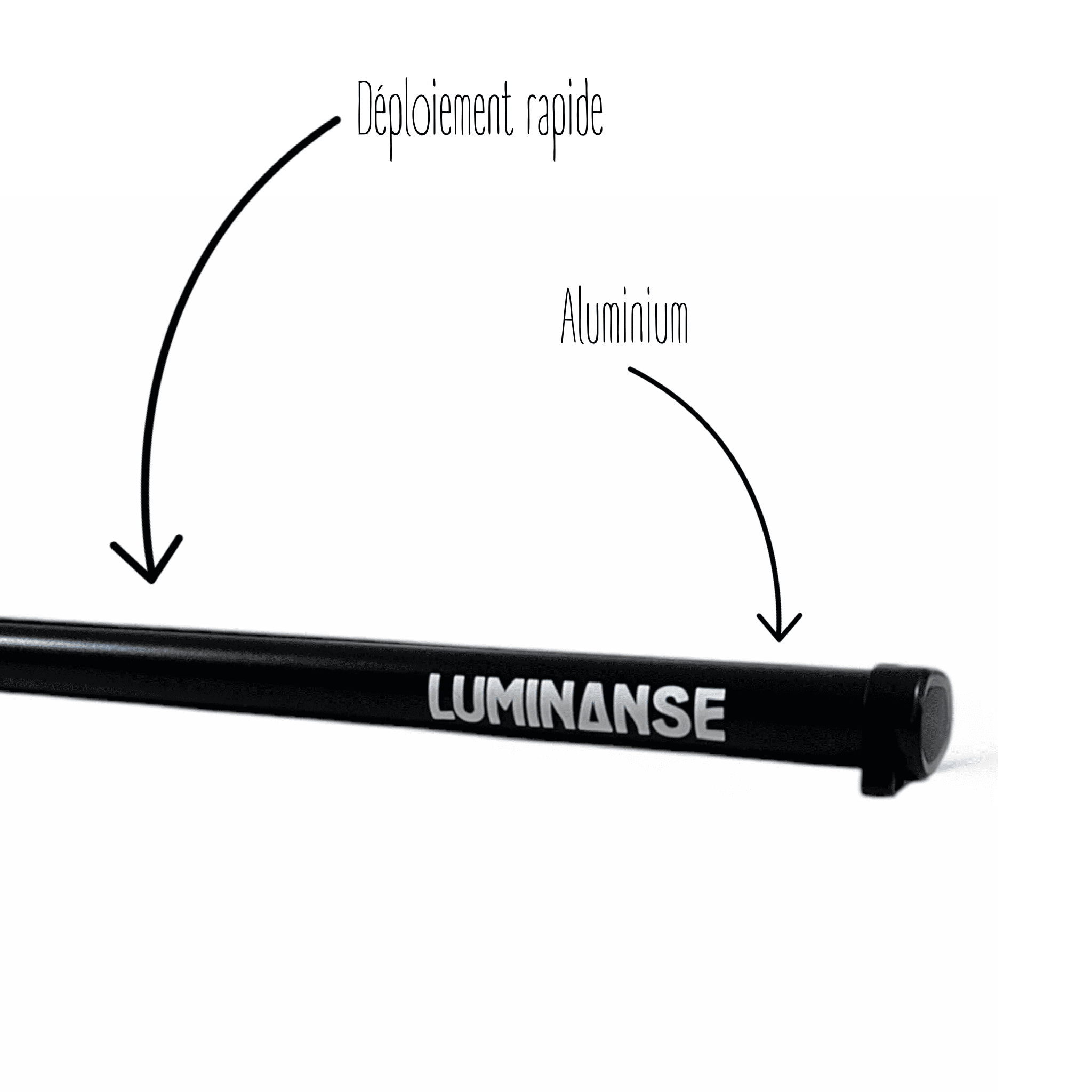 2. Déploiement de la Toile : Une fois le verrou déverrouillé, tirez doucement sur la toile pour la déplier. Grâce au système de pistons intégré, la toile se bloque automatiquement en position tendue dès que vous l'êtes complètement dépliée.