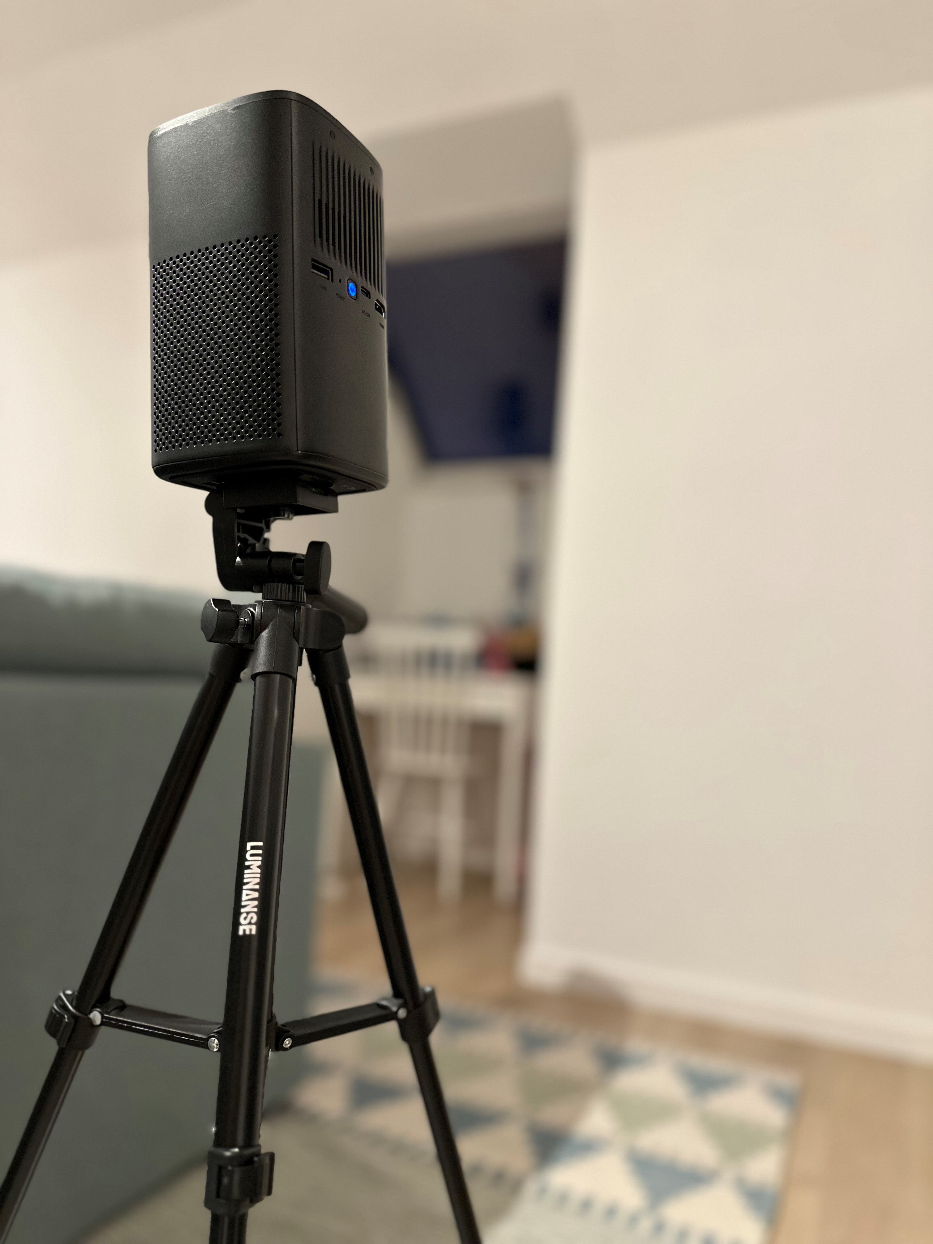 5. Fixation d’un Appareil : Vissez l’appareil (projecteur, appareil photo, etc.) sur la plaque de fixation du trépied. Serrez fermement pour sécuriser l’installation.