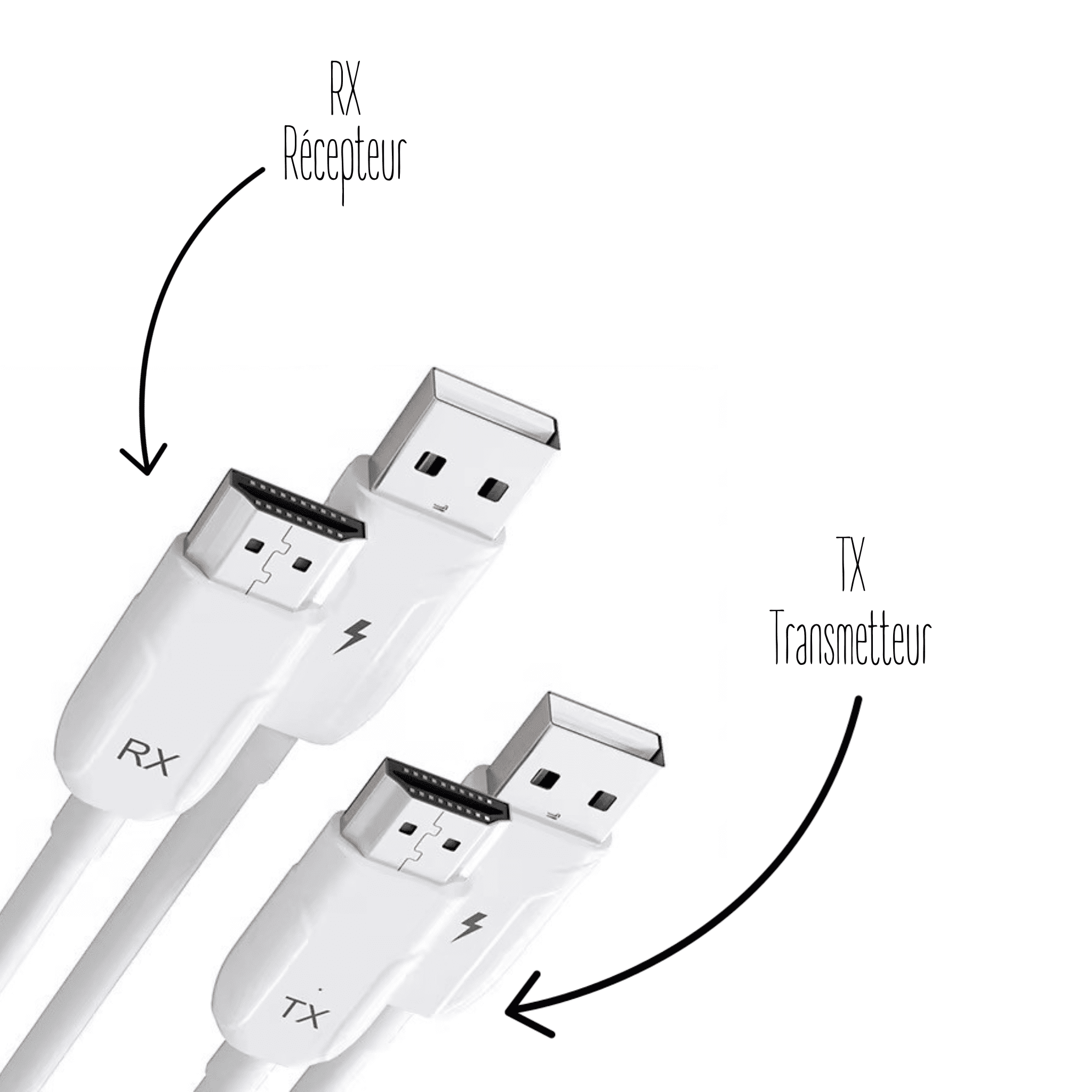 3. Connexion Automatique : Une fois l'émetteur et le récepteur branchés, la connexion se fait automatiquement sans aucune autre intervention. La LED du récepteur (RX) devient stable, indiquant que la connexion est réussie.