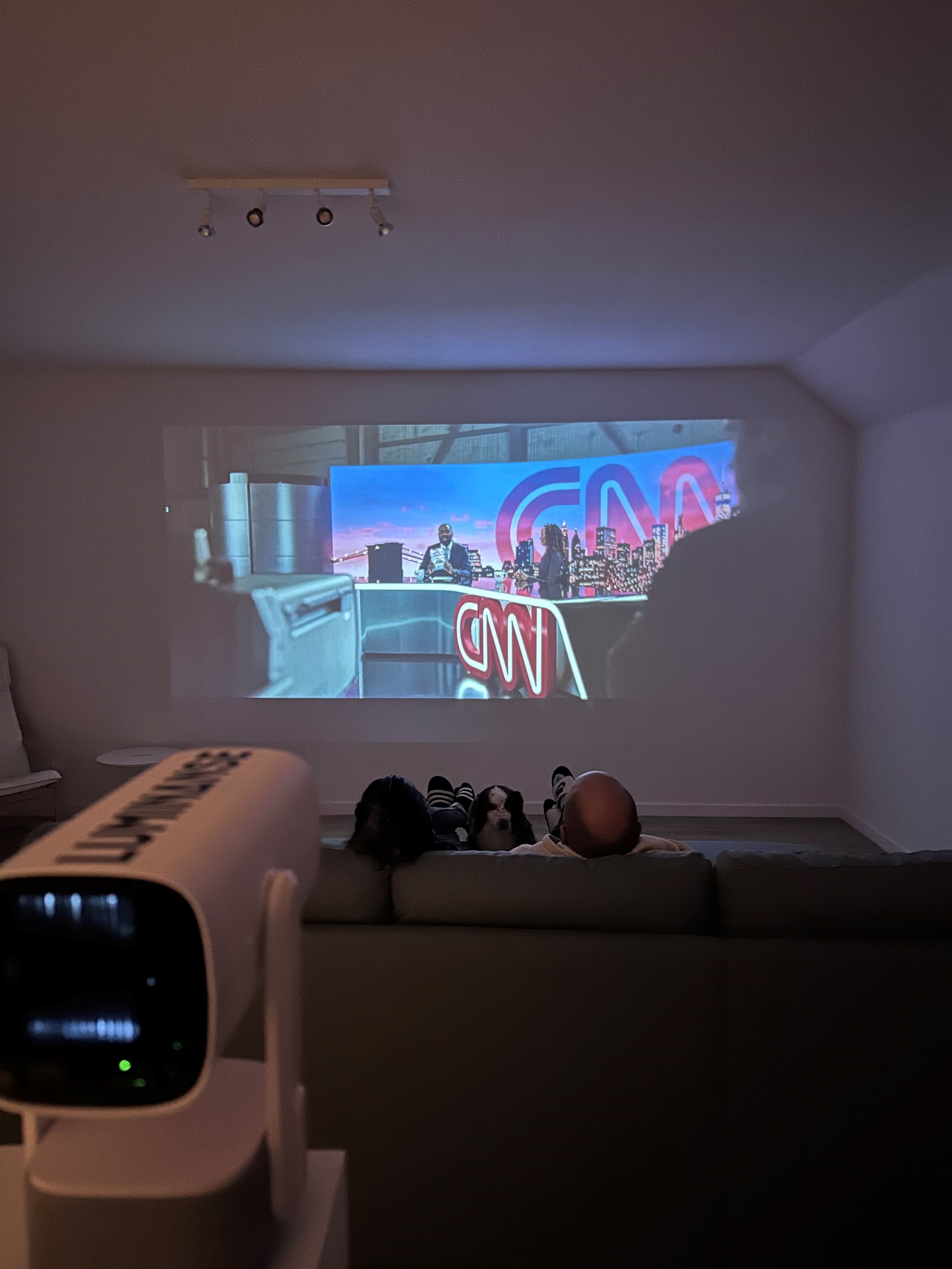 2. Connexion des appareils : Activez le Bluetooth ou le Wi-Fi sur le projecteur pour diffuser sans fil depuis votre appareil. Vous pouvez aussi connecter un appareil via le port HDMI pour projeter vidéos ou présentations. Vous pouvez également partager votre écran ou encore la connexion de votre smartphone.